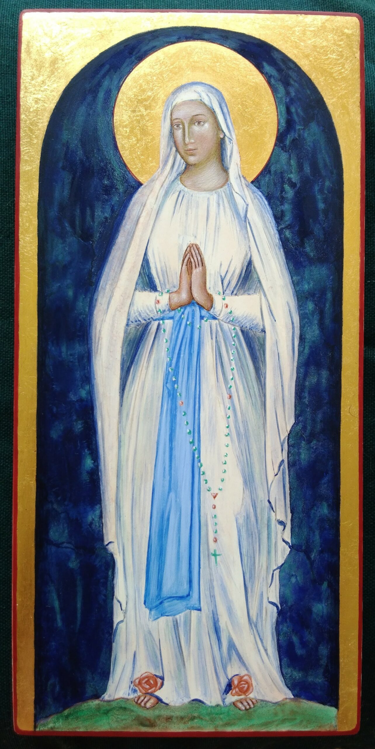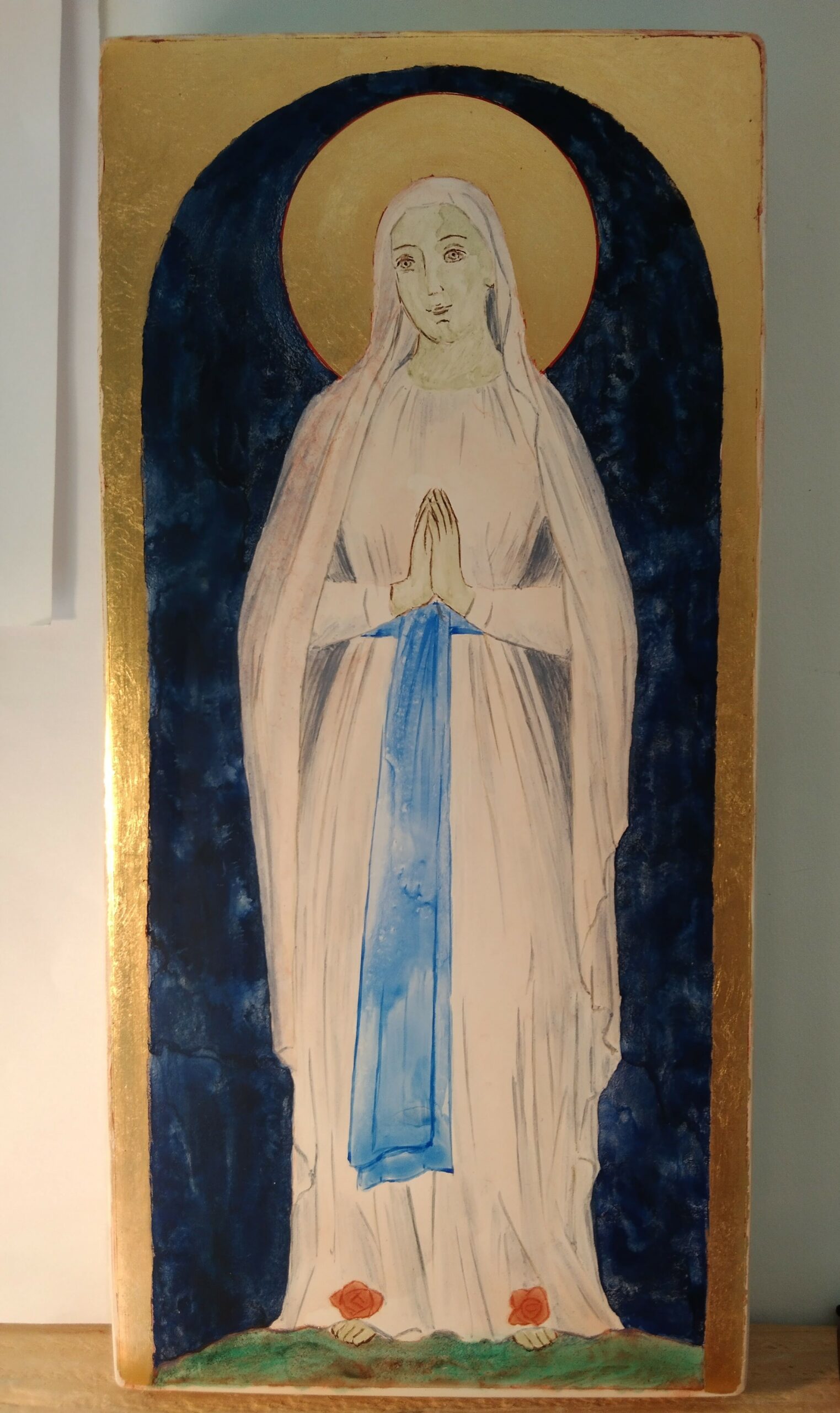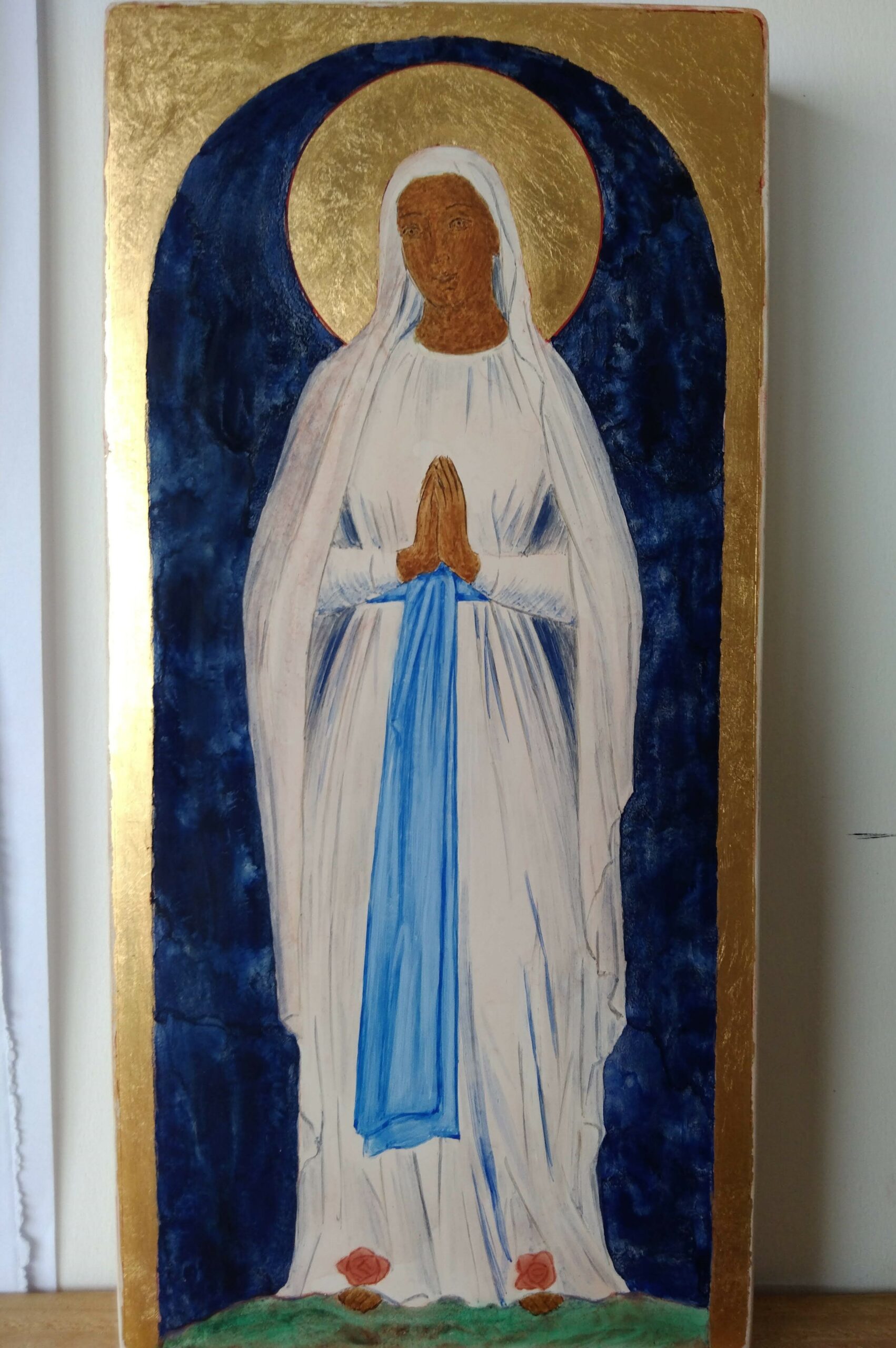 une ceinture bleue et une rose jaune sur chaque pied » Bernadette Soubirous