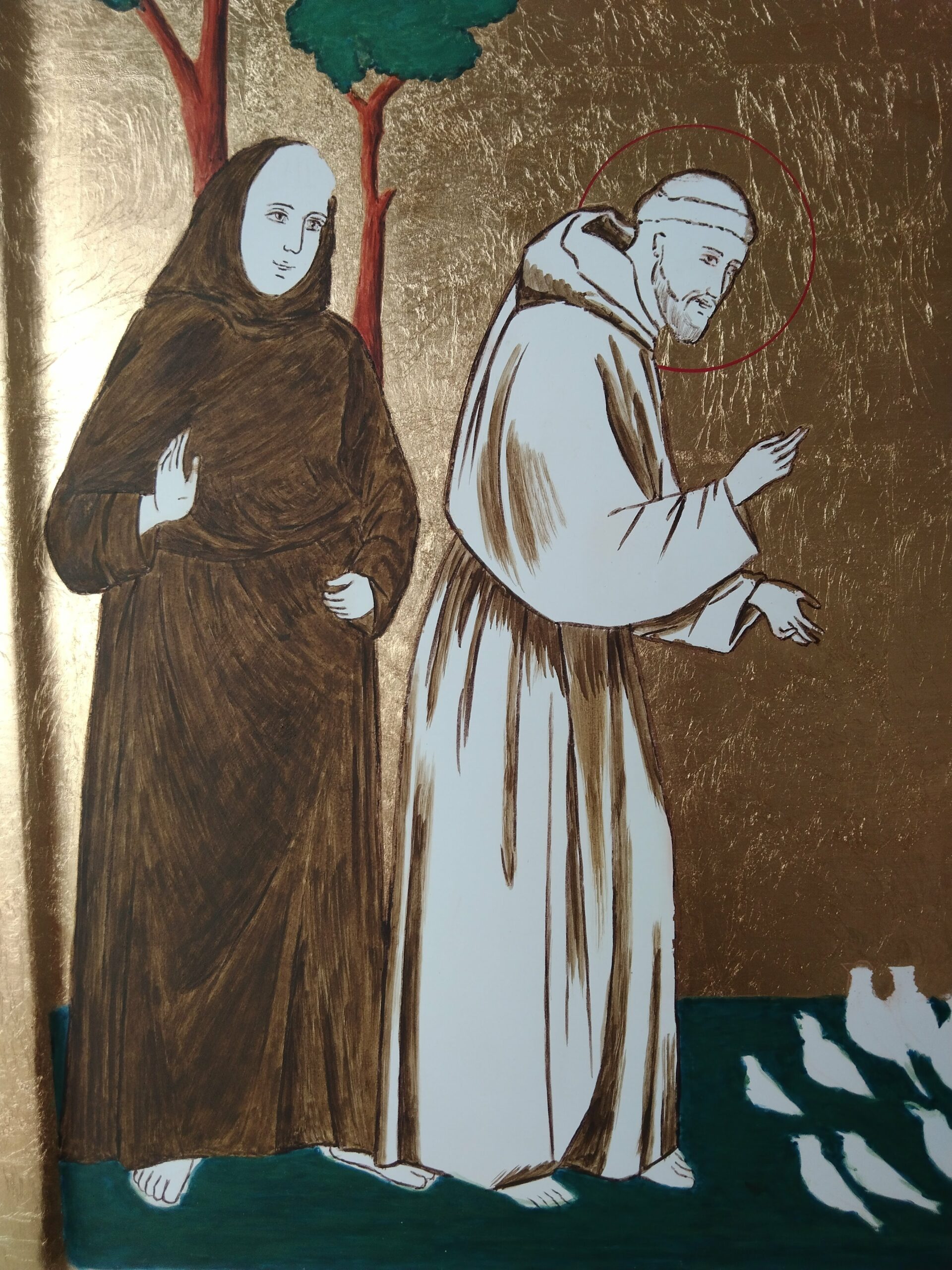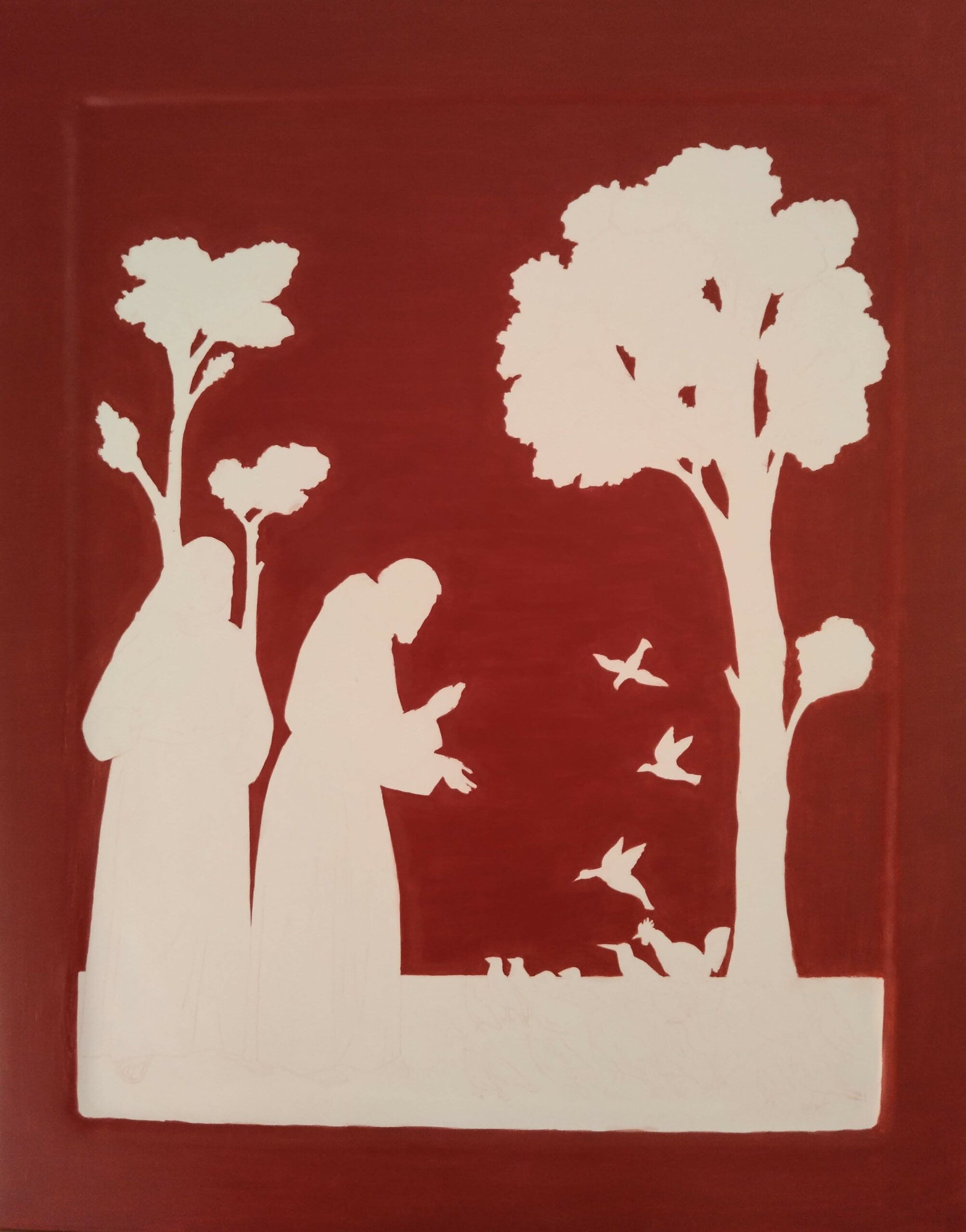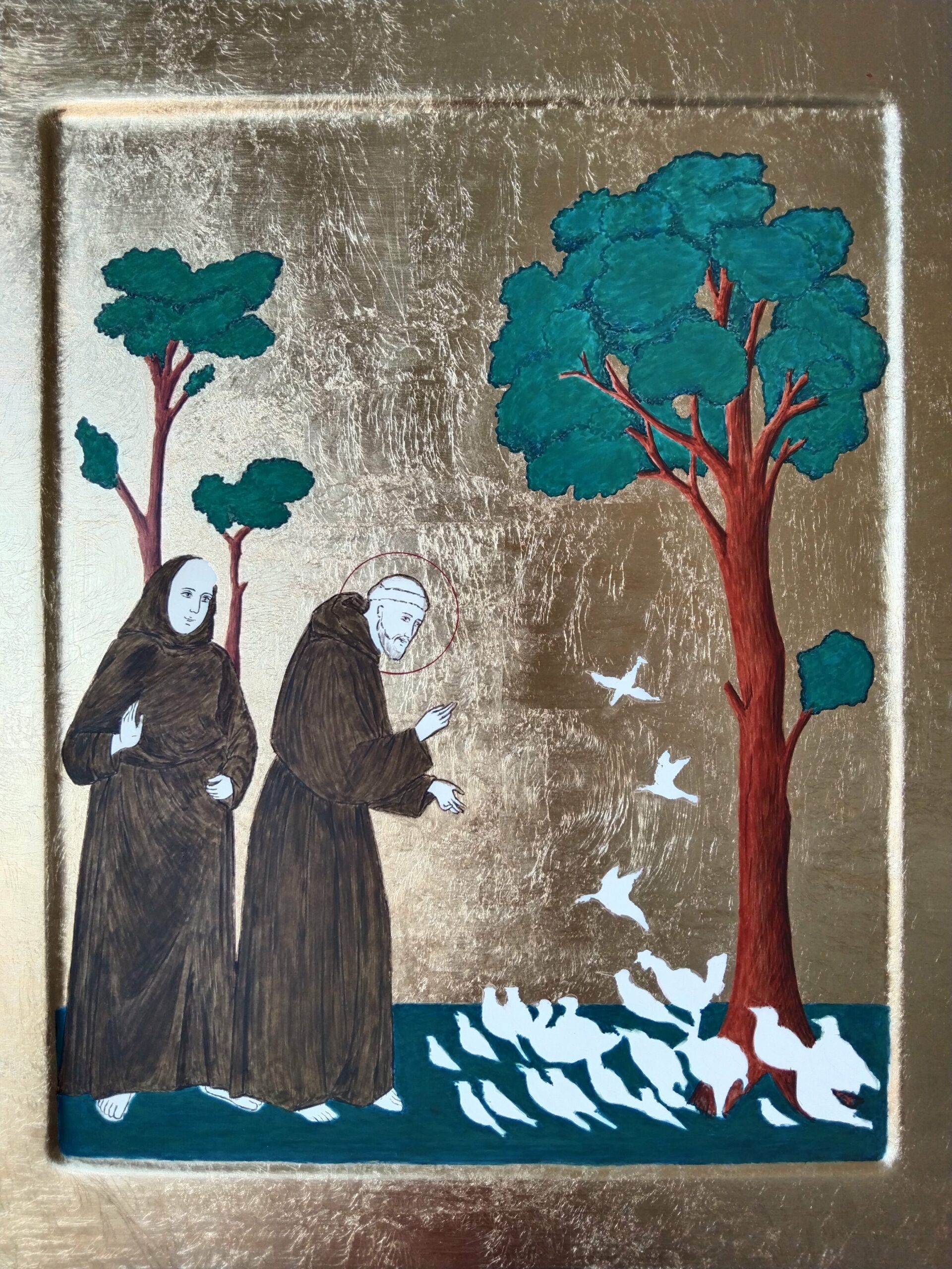 La commande reçue était « St François prêchant aux oiseaux » dans le style du peintre italien Giotto du XIVème siècle.